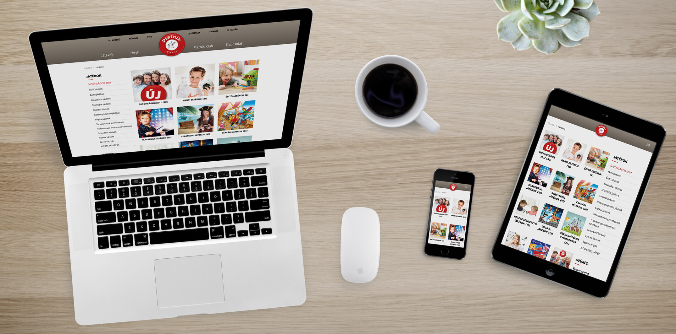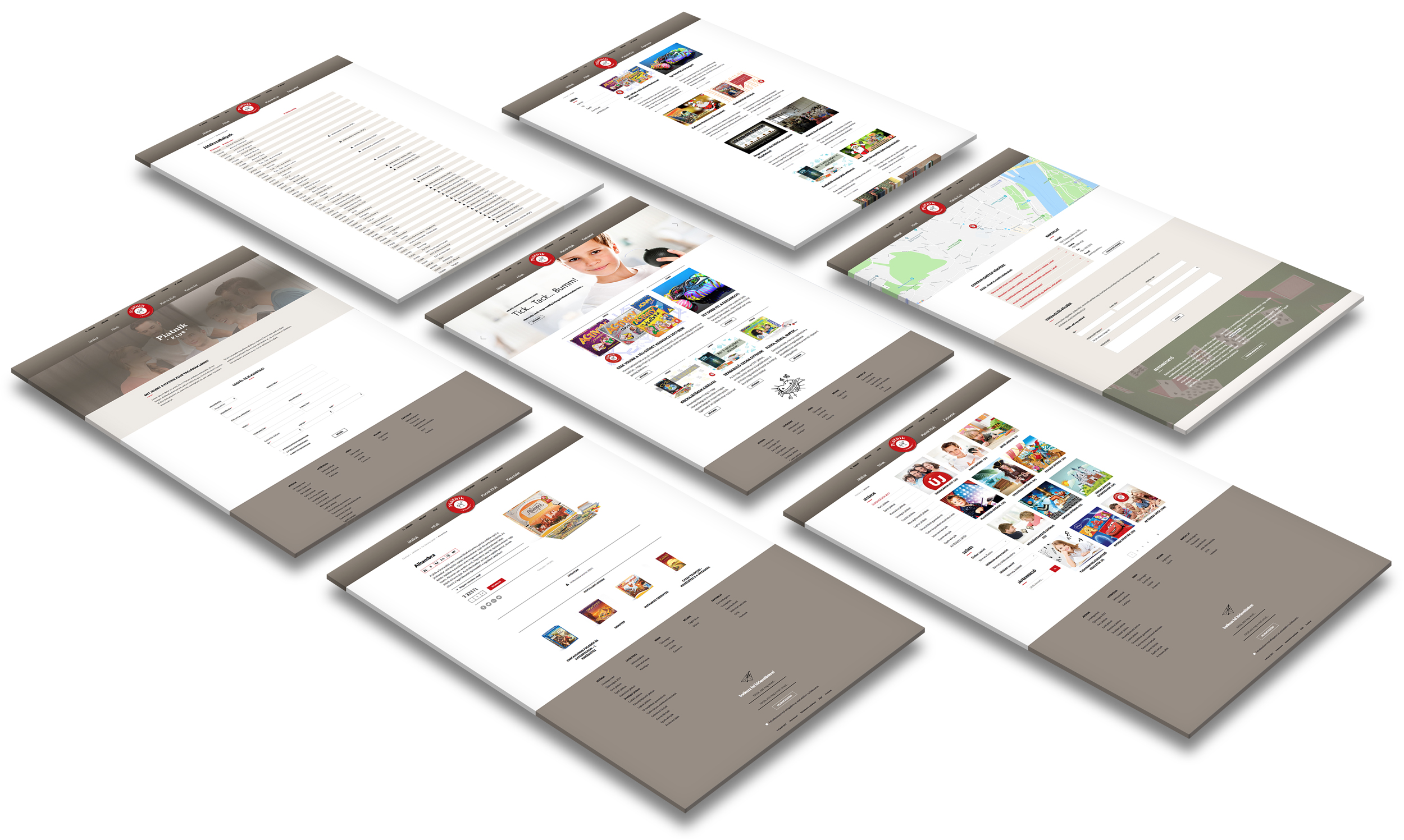 Az oldaltérképet card sorting módszerrel terveztük, a jelenlegi weboldal, a webshop és a piatnik.com struktúráját figyelembe véve. Az összes eddigi tartalomstruktúrát kártyákra bontottuk és az analítikával összevetve, valamint felhasználói visszajelzések alapján olyan szerkezetbe rendeztük, ami a lehető legkönnyebb navigációt teszi lehetővé a felhasználóknak.
